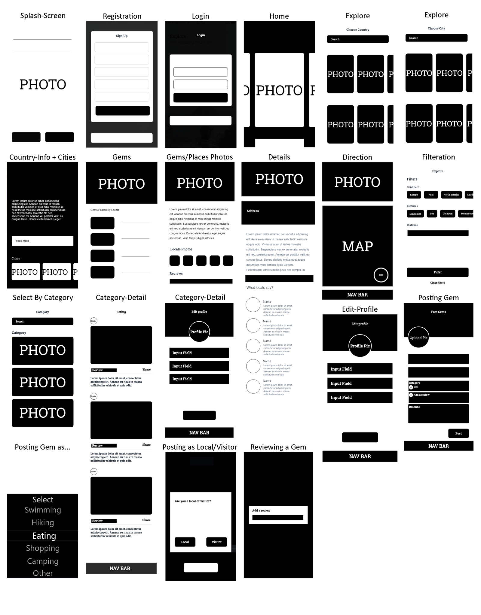 The All Categories section allows users to explore a wide variety of hidden gems, sorted by different categories such as attractions, nature spots, or cultural experiences, while the Places to Eat section focuses specifically on showcasing lesser-known local dining options, highlighting unique restaurants and food experiences. Since our logo has colorful gems, we tried to use