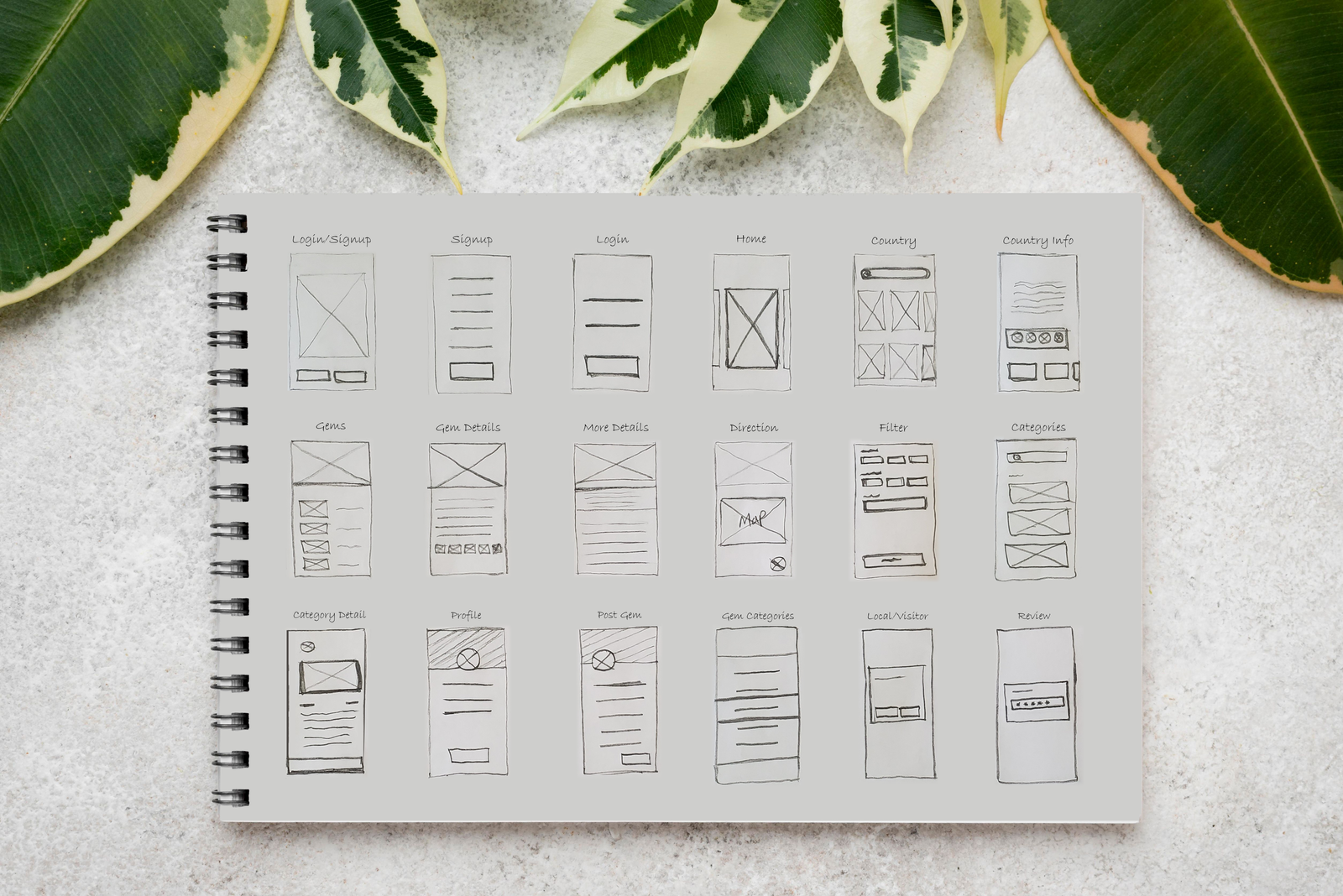 During the design process for HiddenGem, sketches played a crucial role in visualizing the initial concepts and layout of the app.