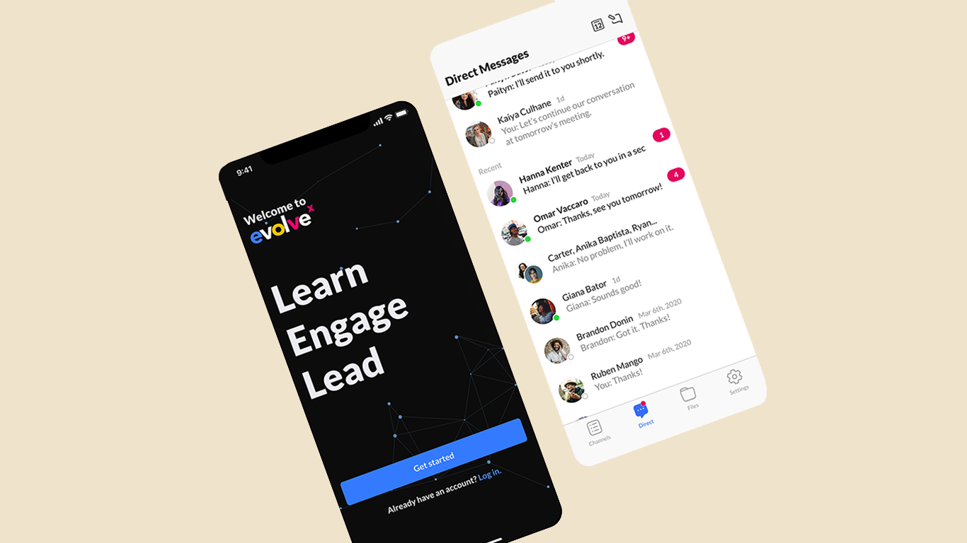 Our goal for the project was to create a mobile platform for Evolve X where designers, developers, and clients can connect and chat with each other. The premise we had for the core functionality was simple: Put the features that Evolve X members use in one app. However, what worked for apps such as Slack may not work for Evolve X, and we also didn't want to bloat our app with features. And so, our greater design vision was to come up with a unifying solution that not only addressed user needs but was also tailored to the workflow unique to Evolve X.